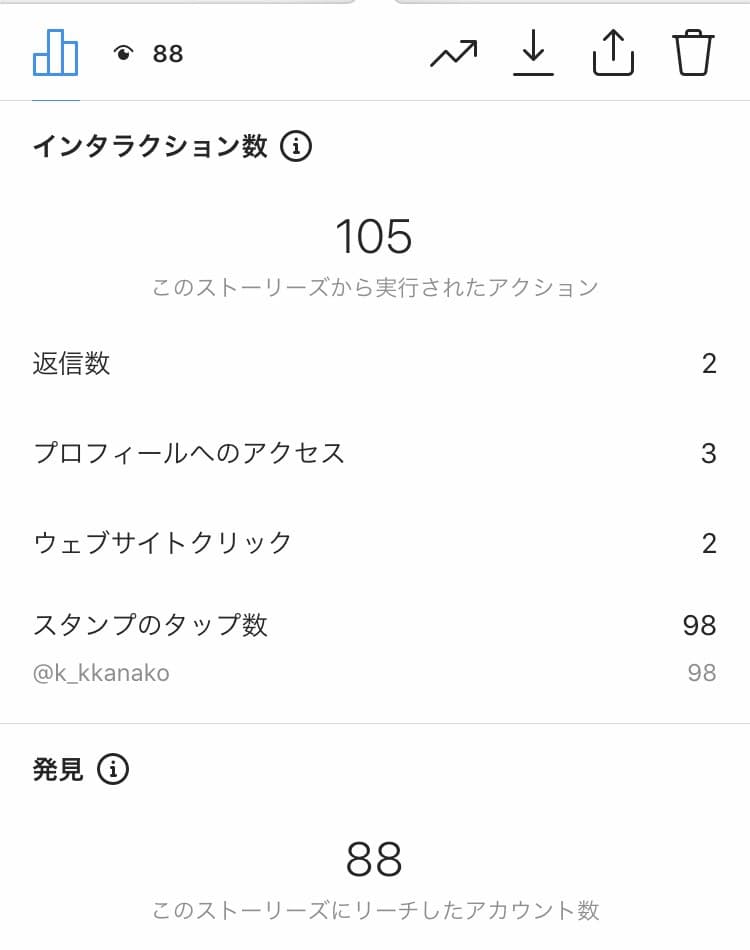 88人しか見てないのにも関わらず、スタンプのタップ数は98回という異常な数値になりました。