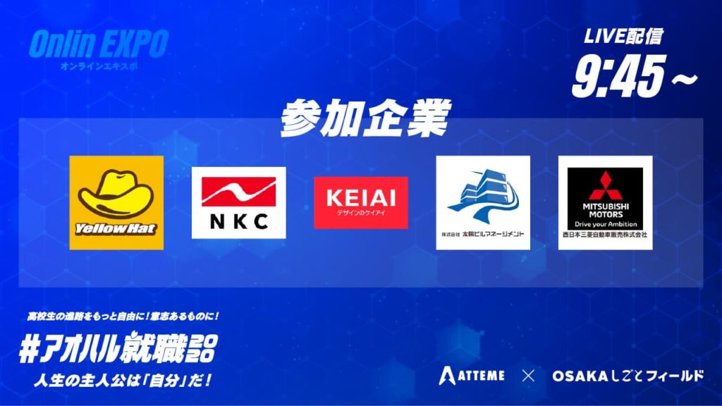 今日はそのアオハル就職2020の中のメインイベントである「オンラインEXPO」の初日で、一日中、YouTubeライブで企業さんが高校生にメッセージを届けます。(有名企業さんばかりです)